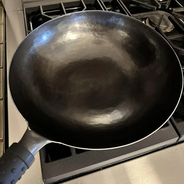 Crafted by master blacksmiths from the Zhang Qiu district in China's Shandong province. This wok is unlike any other, hammered tens of thousands of times, resulting in a wok that is unparalleled in strength, durability and performance. Made from premium carbon steel, this wok heats evenly and quickly, and features a naturally non-stick surface with proper seasoning. With a flat bottom suitable for all stoves, this wok is the perfect tool for creating delicious stir-fries, fried rice, and more. Elevate your cooking game with this exceptional wok, passed down from generations of skilled artisans.