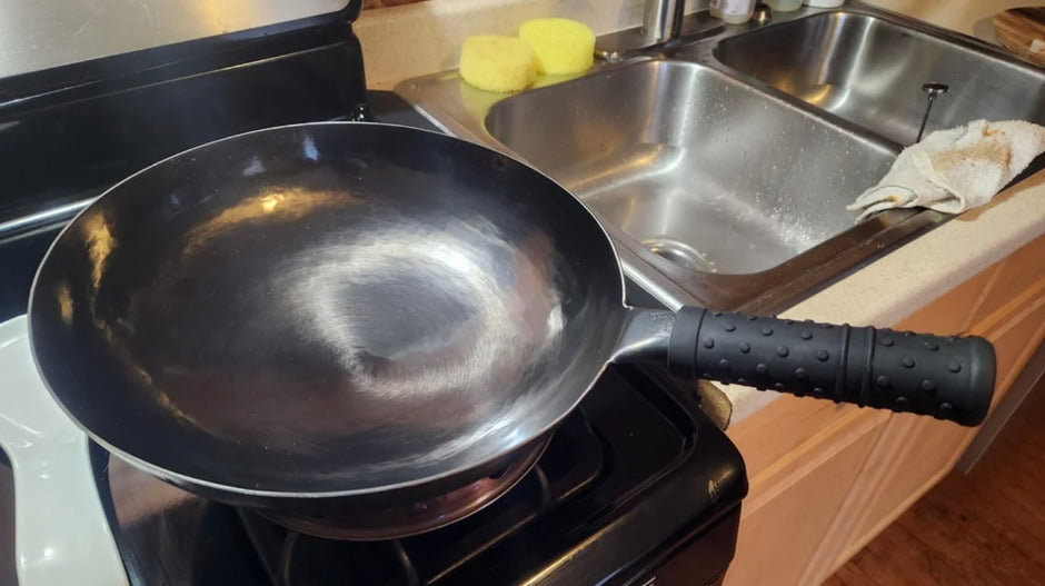 The wok comes blued and is shipped with a layer of protective oil that needs to be washed off before use.